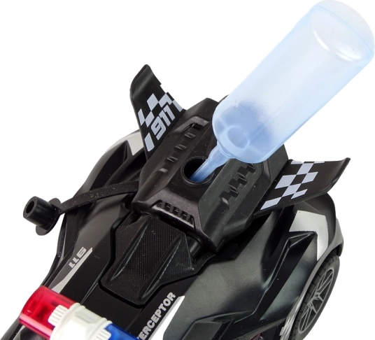 Fyld vand på med den medfølgende flaske, og bilen skaber under kørsel en effektfuld vandtåge, som forstærker følelsen af ægte politiaktion.