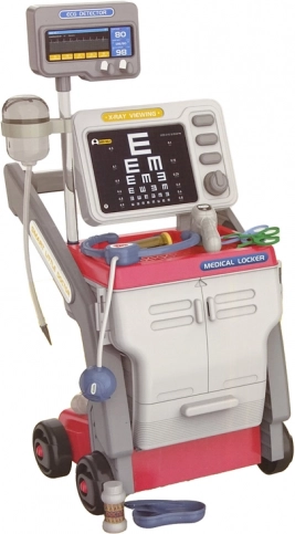 - Mobil station, batteridrevet stetoskop, sprøjte, saks, dekorative klistermærker og yderligere lægetilbehør
