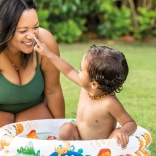 Nyd sommerens afkøling for de mindste med Intex’ kompakte oppustelige bassin med dinosaurmotiver. Det byder på nem installation, sikre, bløde vægge af vinyl og en praktisk størrelse til små haver eller terrasser.