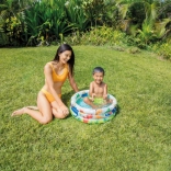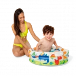Det oppustelige Intex-bassin med søde dinosaurer er ideelt til de første vandlege for børn fra 1 til 3 år. Med en diameter på 61 cm og en højde på 22 cm passer det næsten overalt og giver en sikker og lav zone til leg og afkøling på varme dage.