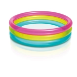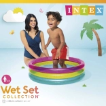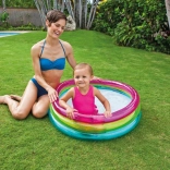 Den oppustelige børnepool INTEX Rainbow er farverig og praktisk til sommerdage. Takket være tre gennemsigtige ringe er den stabil og komfortabel, mens de kompakte mål 86 × 25 cm passer til de fleste haver, terrasser og altaner. Kapacitet på 68 liter ved en anbefalet vandhøjde på 17 cm sikrer en sikker og lav vandflade til småbørn.