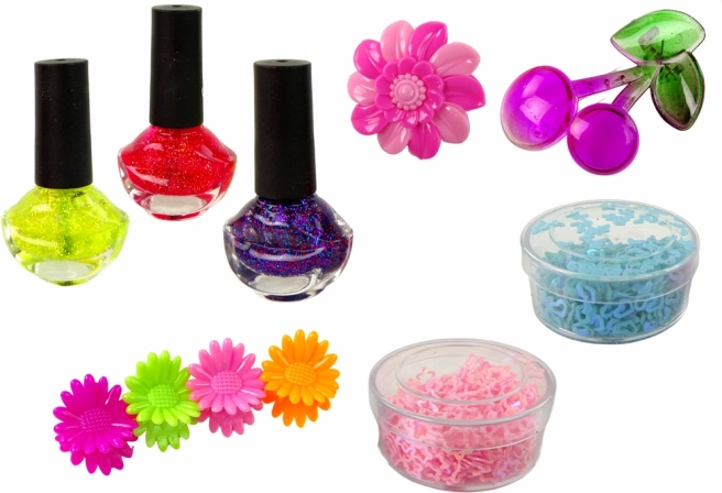 Sættet indeholder tre neglelakker i nuancerne lilla, rød og gul, som tillader dekoration efter din fantasi. Kosmetisk separator og en fil i regnbueform sikrer perfekt forberedelse af dine negle.