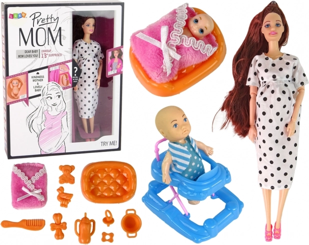 Dukken har en unik funktion med en aftagelig mave, der gemmer på en lille baby, så børn kan opleve en simulering af graviditet og fødsel.