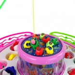 Det sjove fiskespil til børn drejer rundt, giver lyseffekter og lyde og bringer timers glæde til hele familien. Takket være de fem farvede kurve kan op til fem spillere være med. Sættet indeholder små og store fisk samt forskellige stænger, inklusive magnetiske, for nem fangst. Det holdbare plastdesign, batteridrift og støtte til finmotorik og koordination gør dette spil til et ideelt valg for børn fra 3 år.