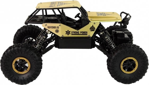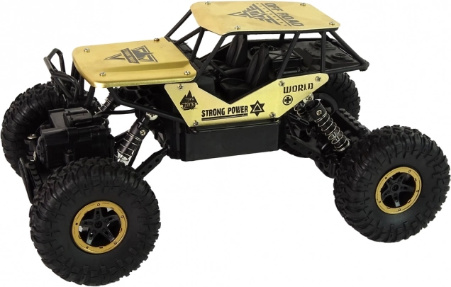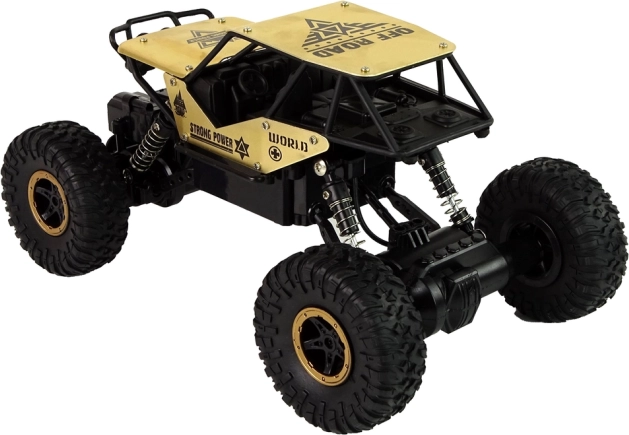 Modellen er klar til kørsel direkte fra kassen – et batteri med kabel medfølger. Takket være de kompakte mål (26 × 14 × 17 cm) er den nem at styre og transportere. Et godt valg til børn fra 6 år og voksne, der søger en sjov offroad RC‑bil med et attraktivt sort‑guld look.