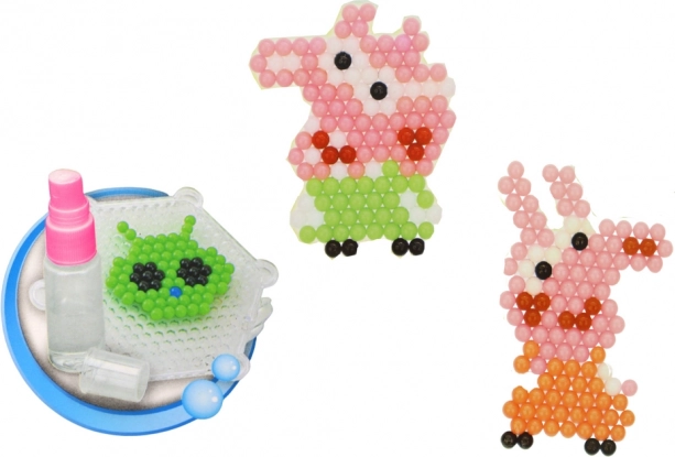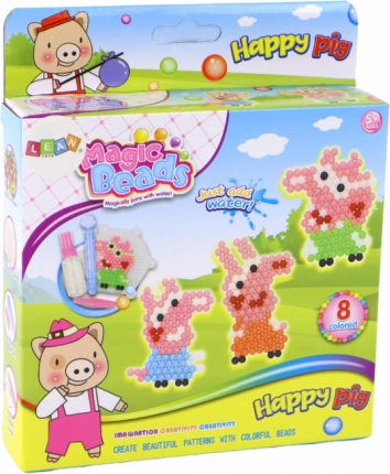 Kreativt sæt med vandperler til små kunstnere med 8 strålende farver, to skabelonplader (kvadrat og sekskant), en forstøver og tilbehør til nemt kreahygge. Det er nok at spraye med vand, så perlerne binder sig uden strygning. Et godt valg til at udvikle finmotorik, fantasi og til at lave vedhæng og søde grisemotiver.