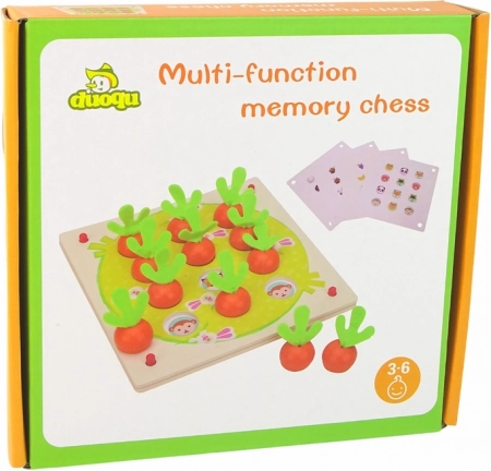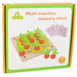 Denne kvalitets træleg udvikler koncentration og træner hukommelsen på en sjov måde. Børn placerer de søde frugt- og grøntsagsfigurer i de rigtige huller efter den valgte skabelon og finder matchende par. Den robuste udførelse sikrer lang levetid og sikker leg.