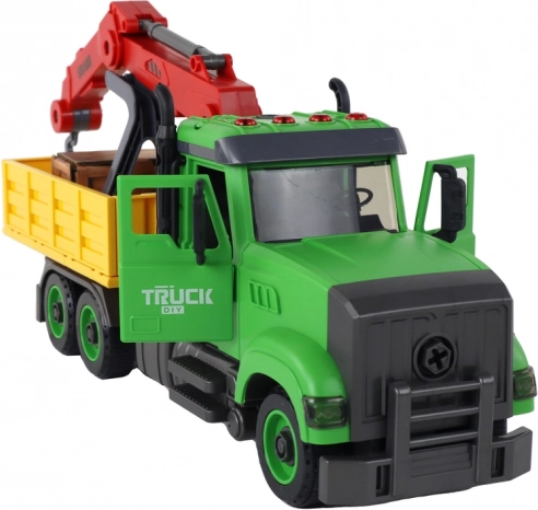 En sjov bygge-dumpbil med kran til små bygmestre, som giver mulighed for skruning og afskruning, friktionsdrev til kørsel frem og tilbage samt realistiske lyde på 4 knapper. Takket være de bevægelige dele (døre, kran, lad) og den medfølgende skruetrækker med udskiftelige bits udvikles finmotorik, kreativitet og tekniske færdigheder.