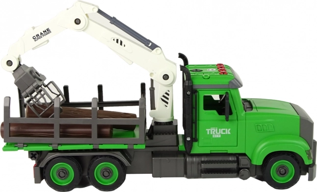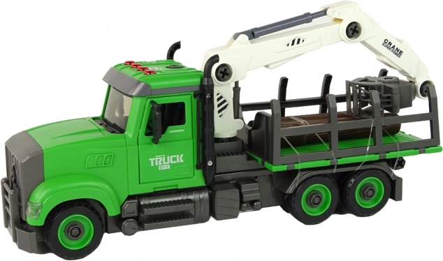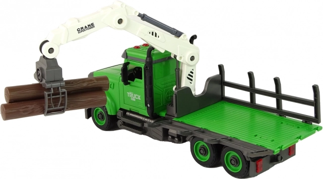 - Realistisk design og funktionel kran med grab til autentisk trætransport