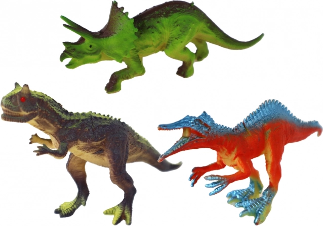 Seks forskellige dinosaurer i stærke farver med iøjnefaldende overfladebehandling stimulerer fantasien og fanger opmærksomheden ved første blik.