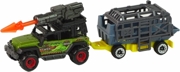 Dette eventyrlige dinosaursæt tager børn med ind i forhistorien. Sættet indeholder detaljerede figurer af en pteranodon og en spinosaurus, en moderne terrænbil med funktionel raketkaster og en trailer med gitre til sikker transport af dinosaurer. Ideelt til både solo- og fællesleg.