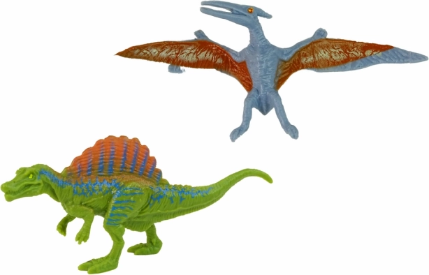 Pteranodon i blå-brun farvekombination og en grøn spinosaurus med orange ryg stimulerer fantasien og understøtter kreativ leg.