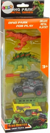 - 2 dinosaurer, terrængående bil med raketkaster, trailer med bur, original emballage