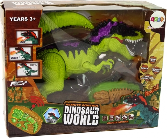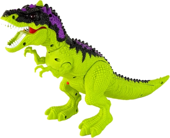 Den fjernstyrede dinosaur i grøn er en dynamisk dinosaur, der kører på 3 AA 1,5V-batterier (medfølger ikke, indsættes i halen), hvilket får den til at opføre sig realistisk. Den udsender rødt lys og karakteristiske dinosaurlyde, hvilket giver et truende udtryk.