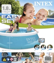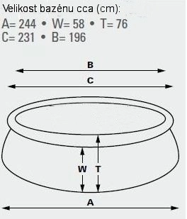 Selvbærende pool. Mål 183 cm (øverste omkreds 145 cm) x 51 cm. Vandspejlshøjde 41 cm. Kapacitet 900 L.