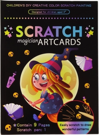 Dette magiske sæt giver børn timer med kreativ underholdning. I pakken finder du 9 billeder til at skrabe, hvor der efter fjernelse af det sorte lag dukker farverige heksemotiver op. Den enkle teknik styrker tålmodighed, koncentration og kreativitet.
