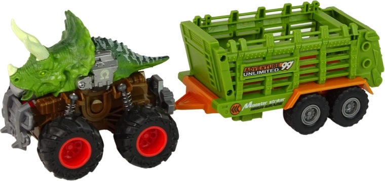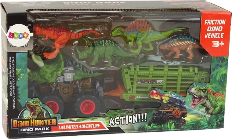 Et af de fremragende elementer ved dette køretøj er dets friktionsdrev. Træk blot køretøjet tilbage og slip, så kører det fremad. Den grønne trailer kan transportere fire forskellige dinosaurer, hver unik i art, form og farver, hvilket gør det muligt for børn at skabe mange forskellige legescenarier.
