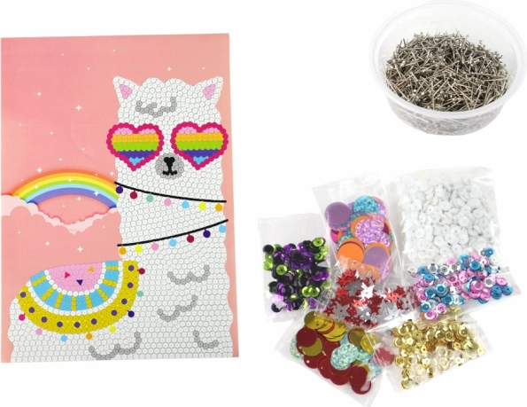 Gør-det-selv-sættet er et kreativt eventyr for alle, der elsker at skabe deres egne værker. Hoveddelen er en skumplade, som fungerer som base for din skabelse. Du kan placere pailletter på den og dermed skabe unikke billeder.