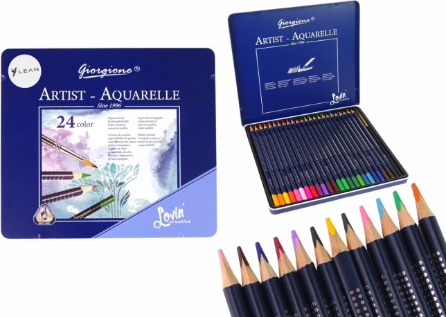 Sæt med 24 akvarelblyanter i metalæske med nem brug og intense farver til kunstnere i alle aldre.