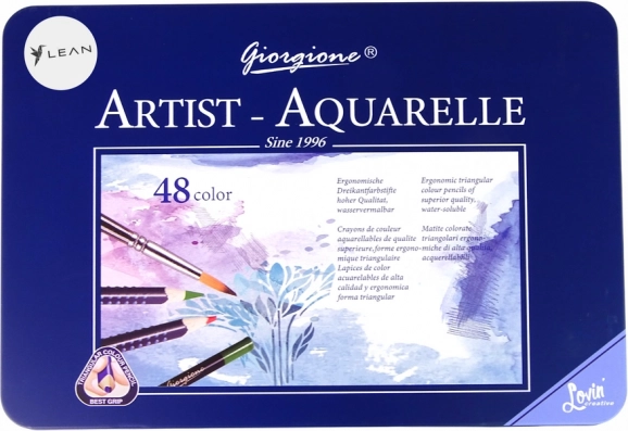 Sættet med 48 akvarelblyanter i en elegant metalæske tilbyder intense farver og nem udvaskning med vand. Blyanterne på 17 cm bruges som almindelige farveblyanter, hvorefter du med en våd pensel skaber en effektfuld akvareleffekt. Den kompakte pakning er ideel til rejser og skole.