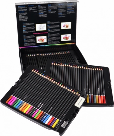 Dette alsidige tegnesæt i en kompakt boks med magnetlukning tilbyder 72 farveblyanter med et rigt udvalg af nuancer – fra blide pasteller til markante, intense farver. Hver blyant har sin plads, så alt er overskueligt organiseret og klar til kreativitet hjemme eller på farten.