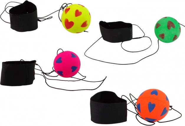 Sjov og holdbar PU-bold med en diameter på 6 cm på elastisk snor og armbånd med velcro. Ideel til træning af koordination og aktiv leg. Vælg mellem 4 farver – gul, grøn, pink og orange. Sødt hjertemotiv og praktisk fastgørelse sikrer, at bolden altid vender tilbage til hånden. CE-certificeret, opfylder EN71, egnet til børn fra 3 år.
