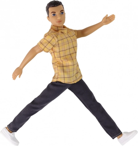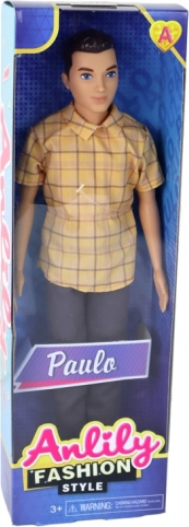 Mød dukken PAULO – en stilfuld ven til hverdagens leg. Han har bevægelige lemmer, bærer en gul ternet skjorte, mørke bukser og hvide sneakers. Takket være det realistiske udseende og den høje kvalitet fremmer den kreativitet og finmotorik hos børn. Velegnet til børn fra 3 år, med CE-certificering og EN71-standard.