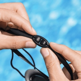 Bløde silikonepuder slutter tæt til ansigtet og forhindrer vand i at trænge ind. Den justerbare silikonerem med hurtig regulering og den komfortable næsebøjle giver præcis og stabil pasform ved hvert tag.