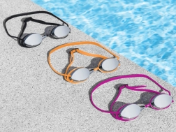 Stilfulde Bestway Elite Blast Pro svømmebriller til 14+ byder på spejlbelagte polykarbonatlinser med UV-beskyttelse og anti-dug belægning, blød silikoneforsegling mod lækage og en hurtigjusterbar silikonerem for perfekt og behagelig pasform.