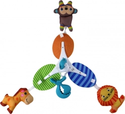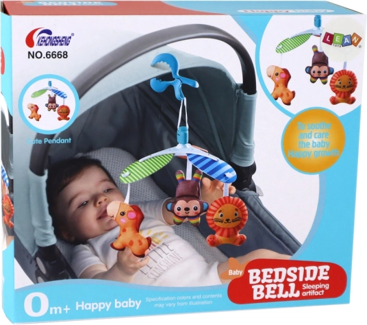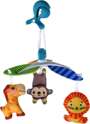 Karrusellen fastgøres med en speciel klips, hvilket gør det let og sikkert at fastgøre det på et vilkårligt sted. Du kan placere den på en seng, barnevogn eller bæresele, hvilket giver barnet glæde af farverige dyr når som helst.