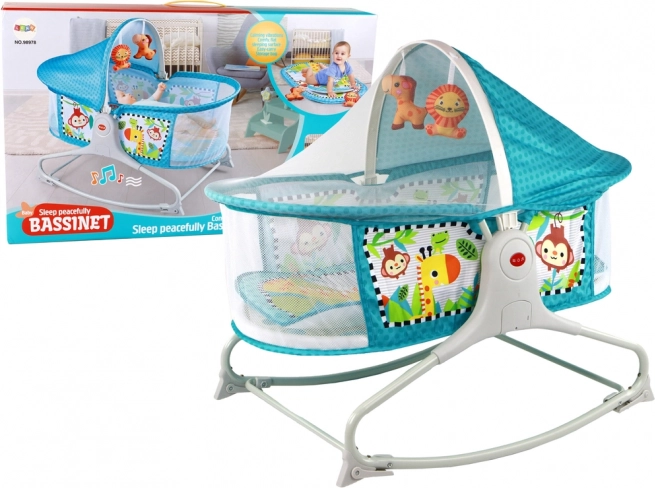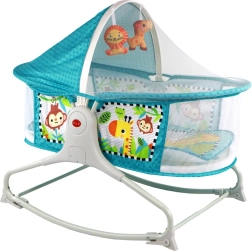 Batteridrevet (2 x 1,5 V, medfølger ikke) og forskellige underholdningsmuligheder, herunder sange og vibrationer, hjælper barnet med at slappe af og falde lettere i søvn.