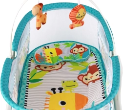 Fungerer som liggestol, gyngestol og legetæppe. Ideel til forskellige aktiviteter for dit barn.