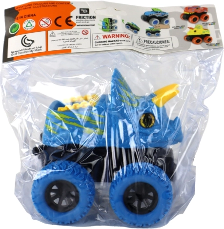 Triceratops legetøjsbil med gummihjul og mekanisk træk til sjov for børn.