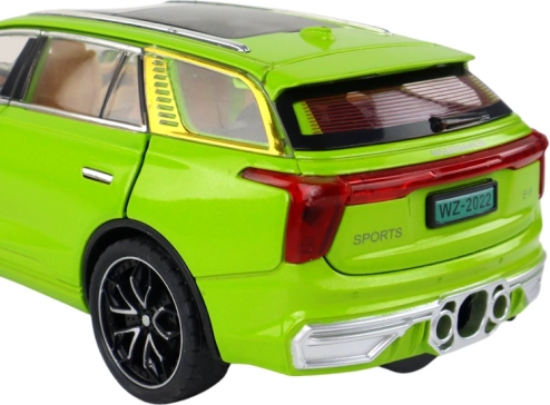 SUV-legetøjsmodellen udmærker sig med realistiske detaljer som sorte hjul, sølvfarvede elementer og synligt interiør. Fremstillet af plast, er denne model en tro kopi af en ægte SUV.