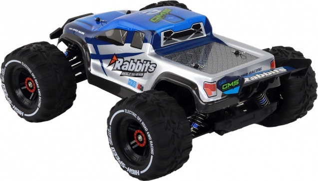 RC terrængående bil RABBITS 4x4 i blå udførelse tilbyder kraftigt firehjulstræk, robust affjedring og store dæk med høj friktion til sjov både i terræn og på asfalt. Takket være hurtig 2.4G-styring, LED-belysning og et 1400 mAh batteri får du lange køreture med jævn styring og stabilitet.