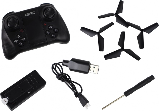 Sættet leveres med en fjernbetjening, som gør det nemt at styre flyet og dets bevægelser, og fungerer også som telefonholder; mens flyet flyver, kan vi på vores telefon følge, hvad der sker i luften.