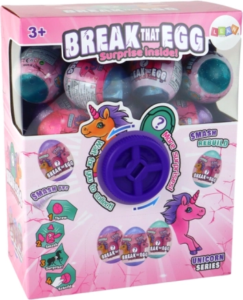 Sættet af æg indeholdende magiske enhjørninger tilbyder interaktive og overraskende muligheder for børn, der nyder at dykke ned i fantasiens verden. Æggene er placeret i en speciel kasse med et udtrækningsmekanisme, der ved drejning til højre udløser et æg, hvilket giver børn et øjeblik med uventet overraskelse.