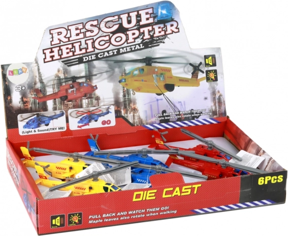 Legetøjet er lavet af aluminiummateriale, hvilket giver det ikke kun en solid struktur, men også et udseende, der ligner virkelige redningshelikoptere. Hver model har indbygget fremdrift, der gør, at den begynder at bevæge sig og rotorene drejer, hvilket øger realismen og sjoven.