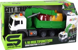 Skraldebil med kran, friktionsdrev, lyde, grøn 1:16