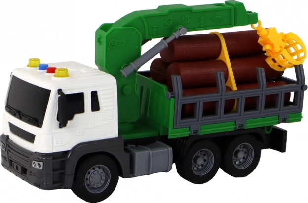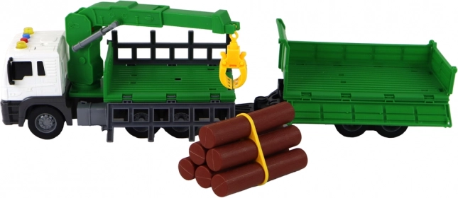 Denne detaljerede skovbrugslastbil er ideel til børns legescener fra skoven. Kranen med krog griber og flytter nemt “stammerne” op på bilen eller den aftagelige trailer, hvilket fremmer kreativitet og finmotorik.