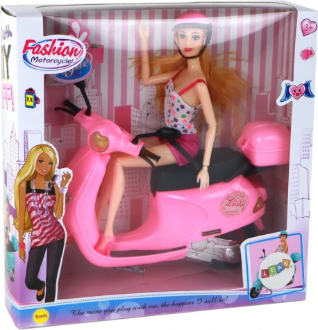Den pink scooter har drejeligt styr og frit roterende hjul, så legen bliver jævn og sjov på forskellige overflader. Dukken er sikkert fastgjort til scooteren, så hun ikke glider af under kørsel. Hele sættet er let, nemt at transportere og perfekt som gave.