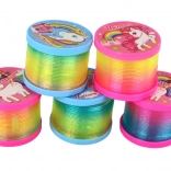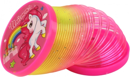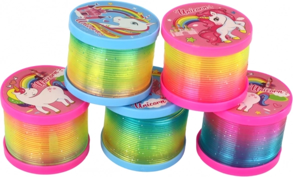 Oplev magien i bevægelse og lys med en regnbuefjeder med enhjørningemotiv. Den integrerede LED-diode i en af skiverne skaber fængende lyseffekter under leg, som begejstrer børn både hjemme og til fester. Takket være de beskyttende skiver i begge ender er fjederen let at styre, og den filtrer ikke.