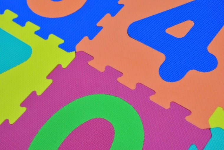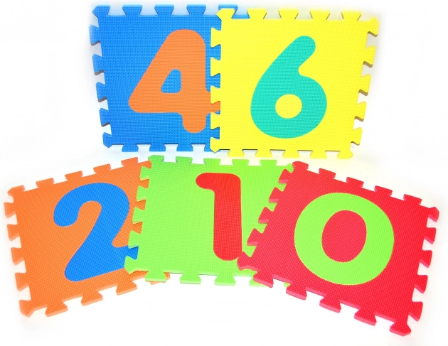 Skumgulvpuslespil med rillet overflade og udtagelige dele, som er sikre for børn. Hjælper med at lære farver, tal og udvikle koordination.