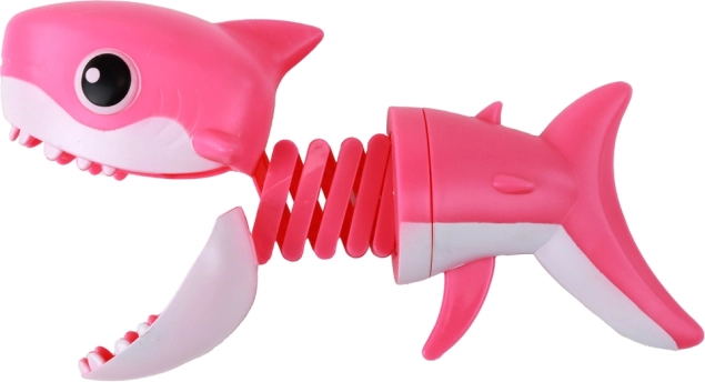 Hajen er fremstillet af holdbare materialer, der sikrer lang levetid. Den rosa farve giver legetøjet et attraktivt udseende. Desuden hjælper legen med mekanismen med at udvikle børns motoriske evner.