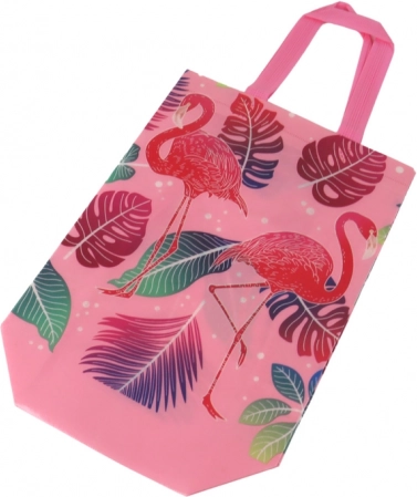 En stilfuld lyserød gavepose med flamingomotiv, der giver din gave elegance og tropisk charme. Den er lavet af et robust materiale, som pålideligt beskytter indholdet, og takket være det universelle design passer den til fødselsdage, højtider og andre lejligheder. Desuden er den genanvendelig.