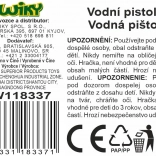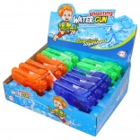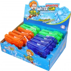Stilfuld vandpistol med en længde på 15 cm, ideel til forfriskning på varme sommerdage. Fås i tre farvevarianter – blå, grøn og orange.