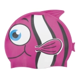 Den søde Bestway børnesvømmehætte i slidstærk silikone med motiv af en smilende fisk begejstrer små svømmere. Den tilbyder universel størrelse, fremragende pasform og beskyttelse af hår og ører under svømning.