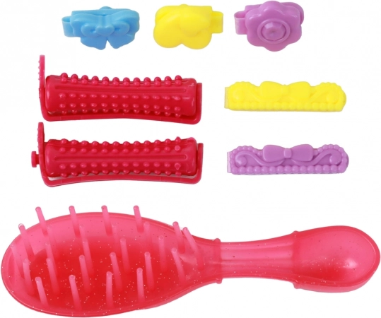 Pakken indeholder alle nødvendige tilbehør til at skabe unikke frisurer – to krøllejern, fem forskellige klips og en stilfuld børste. Med dette sæt kan du udvikle dit barns kreativitet og stilistiske færdigheder.