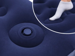 Den indvendige coil-beam-konstruktion fordeler vægten jævnt og modvirker nedbøjning, så madrassen forbliver stabil selv ved bevægelse. Takket være den fodbetjente pumpe kan du nemt pumpe den op uden elektricitet, og den tovejs låseventil sikrer hurtig oppumpning og udtømning. Ideel til telt, sommerhus og som komfortabel ekstraseng til gæster.