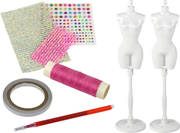 En drøm går i opfyldelse for små designere! Dette kreative sæt til design af kjoler til dukker indeholder 5 forskellige stoffer, 2 standere til præsentation af modeller, pailletter, bånd og skabeloner. Udvikler kreativitet, finmotorik og sans for farver. Sikker udførelse med CE-certificering og standarden EN71, ideelt til børn fra 6 år.